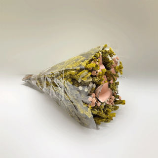 Buquê de flores secas com flor de madeira - Rosa Claro