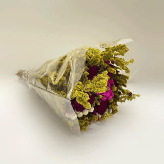 Buquê de flores secas com flor de madeira - Rosa Pink