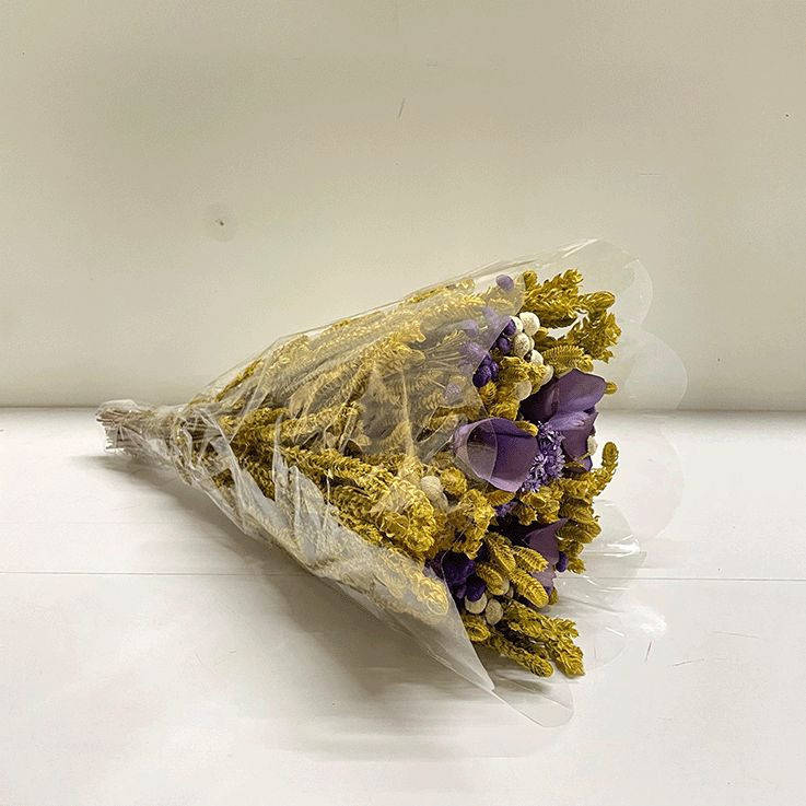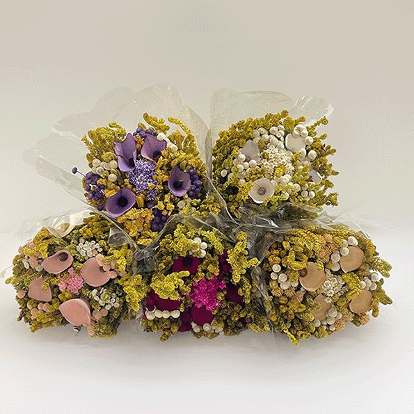 Buquê de flores secas com flor de madeira - Lilas