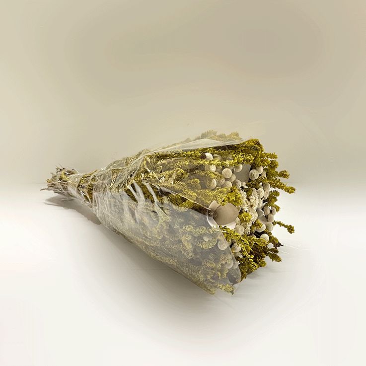 Buquê de flores secas com flor de madeira - Branco